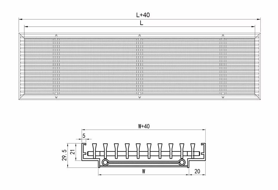 TF4整体采用优质挤压铝合金型材,整体结构坚固,经久耐用,与装饰结合性好。可根据需要配置静压箱,安装、拆卸方便,内芯可整体取出便于对风口下面灰尘清理;产品表面标准处理方式为阳极氧化,也可为客户特制符合RAL标准的其他颜色。
